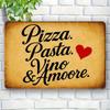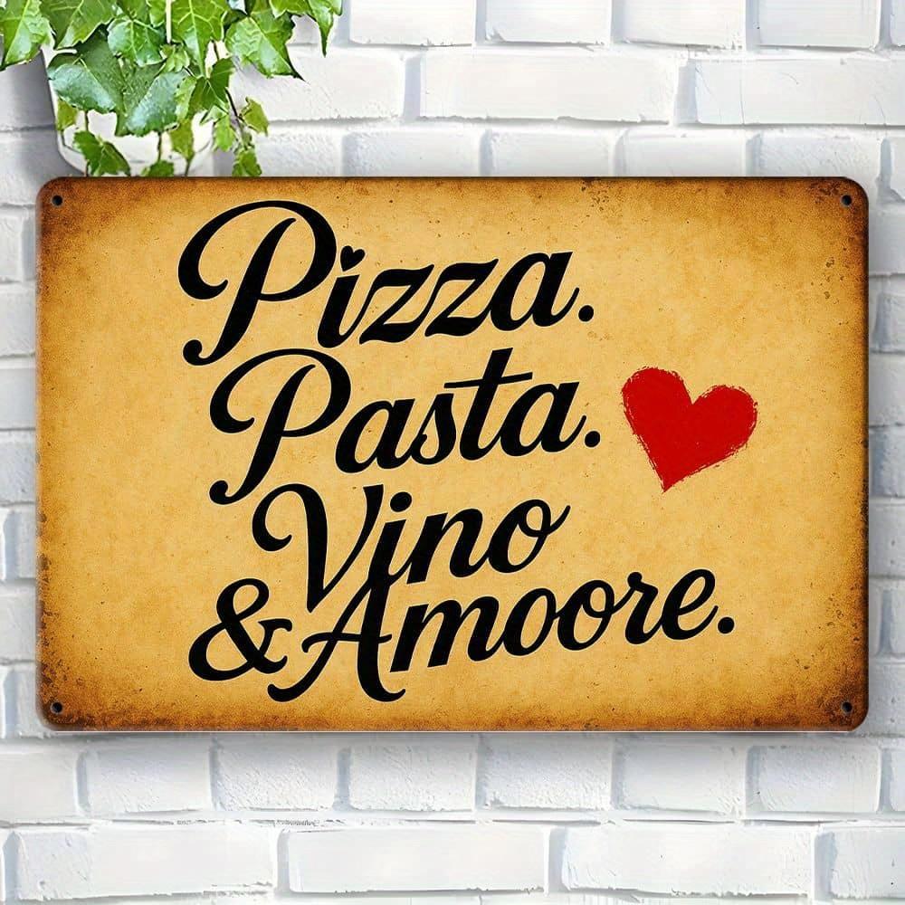 Italian Cuisine Metal Sign - "Pizza. Pasta. Vino & Amore." Vintage Aluminum Decor for Dining & Bar Spaces