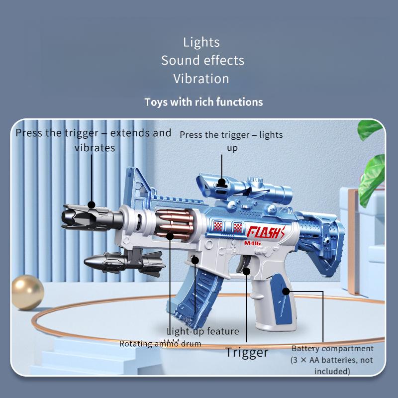 Electric Sound Light LED Toy Gun Spinning Submachine Gun Prop Vibrating Voice Rifle Music Flash Gun Boys Birthday Gift