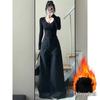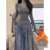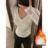 Women's Slim Fit White V-Neck Long Sleeve Base Layer Top with Velvet, Perfect for Autumn and Winter