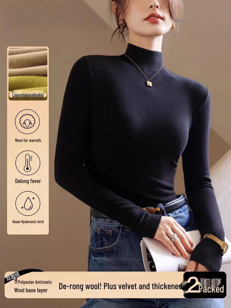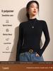 Women's Black Fleece-Lined Half-High Neck Base Layer Knit Top - Thickened Long Sleeve for Autumn/Winter 2026