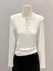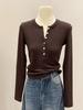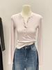 Women's Slim Fit Long Sleeve Henley Collar Mousse Cashmere Top for Spring/Autumn