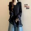 Women's Plus Size V-Neck Lace Hem Long Sleeve Loose T-Shirt – Spring Fashion