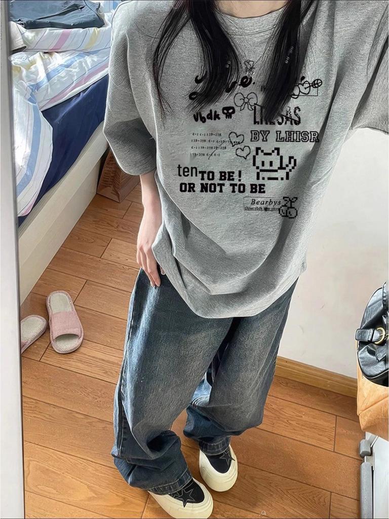 Embrace a classic vibe with this plus-size women's T-shirt, crafted from pure cotton for ultimate comfort. Ideal for summer, it features a relaxed, oversized fit that keeps you cool and stylish. The T-shirt sports a round neckline and short sleeves, perfect for effortless everyday wear. Decorated with a chic letter design, it's a versatile piece that adds a retro touch to any casual outfit.