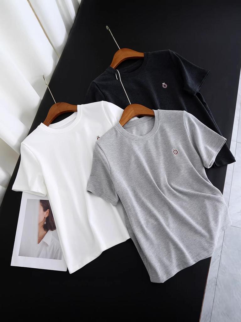 Women's Summer Embroidered Short-Sleeve T-shirt: Versatile Solid Color Base Layer Tee