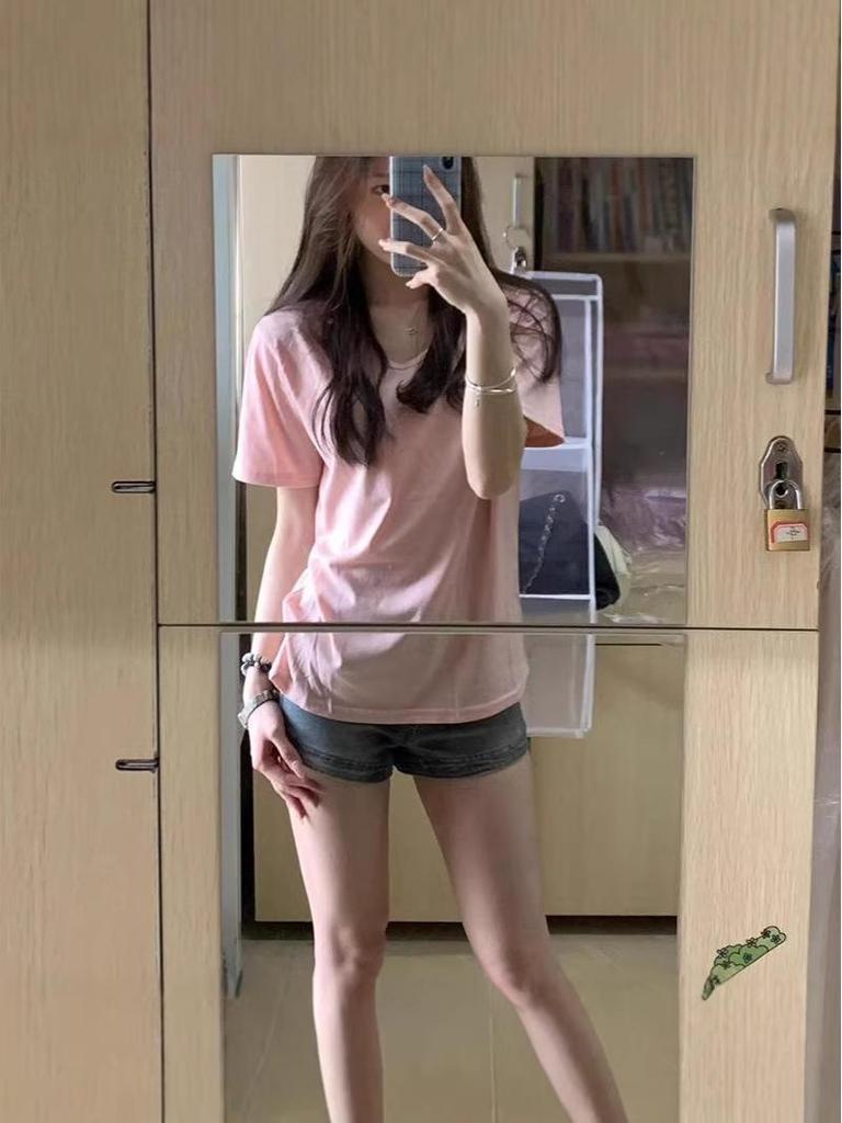 Elevate your summer wardrobe with this stylish women's top, designed to offer both comfort and elegance. Crafted from high-quality cotton, this short-sleeve T-shirt features a flattering V-neckline that enhances its appeal. The solid color and loose fit create a slimming effect, making it a versatile choice for any occasion. Its half-sleeve design and Korean style provide a modern and trendy look, perfect for pairing with your favorite jeans or skirts. Enjoy a timeless piece that effortlessly complements your casual and chic ensembles.