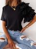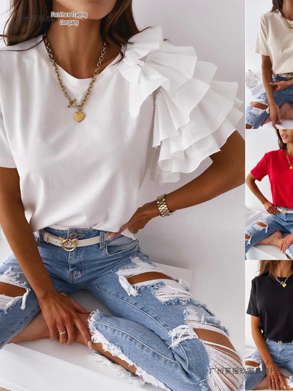 2026 Summer Fashion Women's Ruffle Short Sleeve Round Neck T-shirt, European and American Style