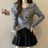 Women's Plus Size Ribbed Irregular Long Sleeve Top - Korean Style, Loose Fit, Slimming Base Layer for Autumn/Winter.