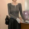 This Women's Spring Long Sleeve Slim Fit Colorblock T-Shirt is crafted from soft, breathable cotton, ensuring comfort throughout the day. Its design features a solid colorblock pattern, adding a subtle yet stylish touch to your wardrobe. With its long sleeves and slim fit, this versatile t-shirt is perfect for layering or wearing on its own during the transitional spring weather. Ideal for casual outings or relaxed settings, it effortlessly combines comfort with contemporary style.