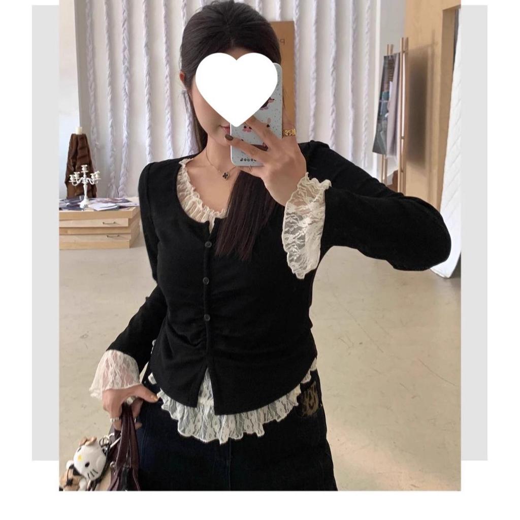 Autumn Japanese-Korean Style Casual Lace Patchwork Top