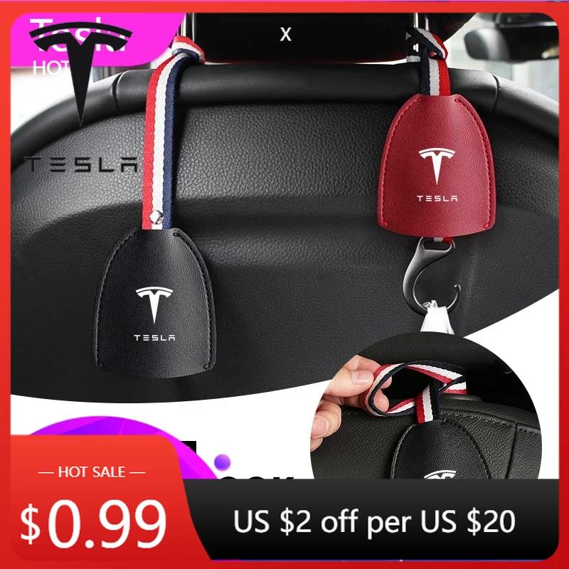 Car Sticker 2025 New Tesla 1Pcs PU Leather Car Seat Back Hooks Auto Interior Accessories for Tesla Model 3 Model S X Model Y Roa