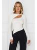 European Women's New Fashion Ribbed Slit T-shirt: Solid Color Autumn Winter Slim Casual Top