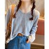 Women's Chic French V-Neck Knit Sweater, Lightweight for Spring/Autumn, Unique Korean-Style Design