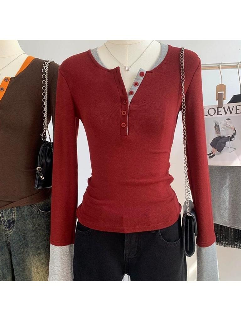 Elevate your wardrobe with this chic long-sleeve top designed for women who love a touch of flair. Featuring a trendy contrast color design, this faux two-piece top effortlessly combines style and comfort. Crafted from high-quality cotton, it ensures a soft and breathable experience ideal for any season. The long sleeves add a sophisticated touch, making it perfect for both casual outings and more polished occasions. Pair it with your favorite jeans or skirts to create a fashion-forward look.