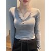 Autumn/Winter 2025 Slim V-neck Long-sleeve Base Layer Top - Sexy Versatile Women's Short T-shirt.