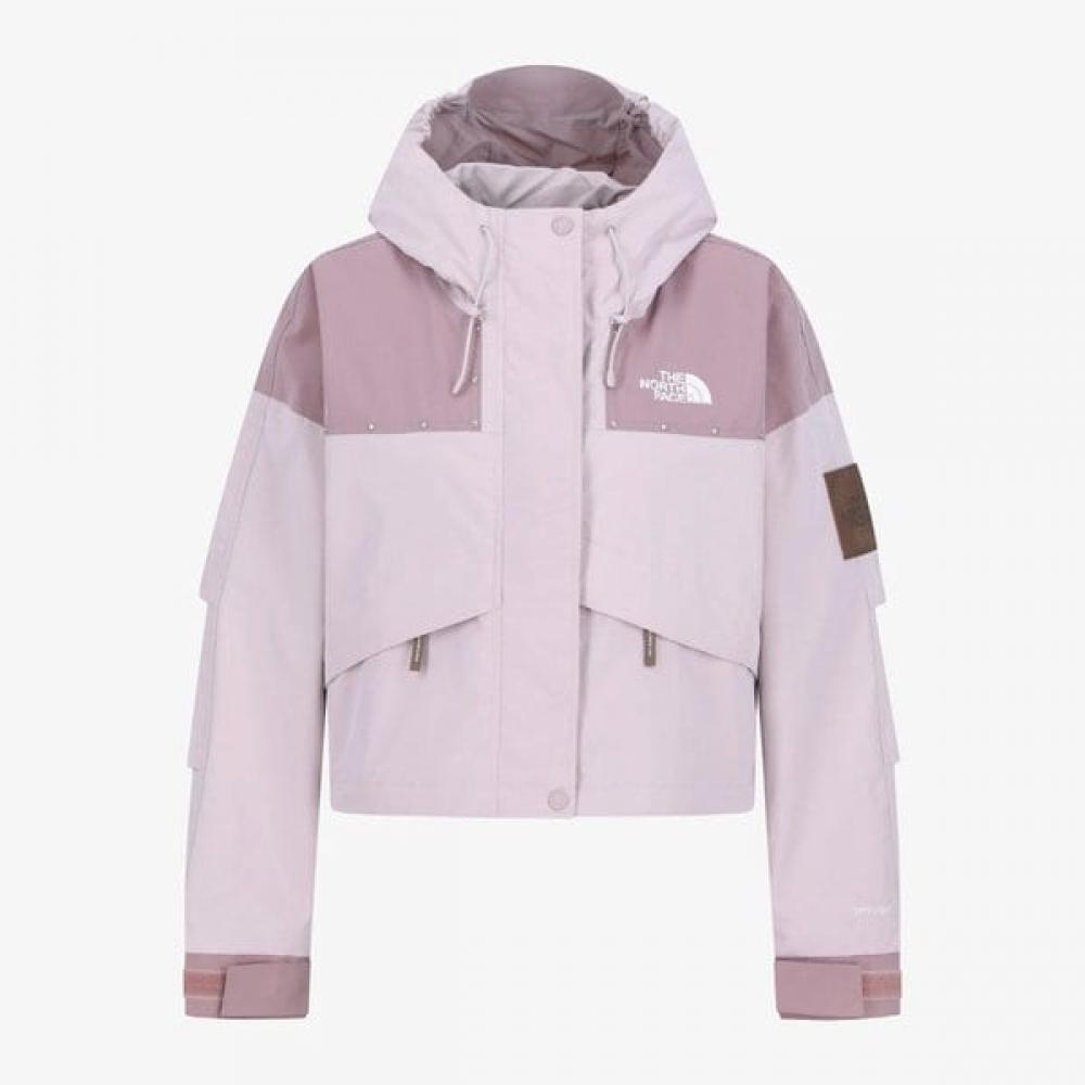 The North Face NJ2HR80M Women's Vintage Baden Jacket is a trendy reinterpretation of a hoodie-style jacket made with a top block color scheme and vintage-feeling peach exterior material. It offers waterproof functionality with DRYVENT material and is ideal for spring transitional wear.