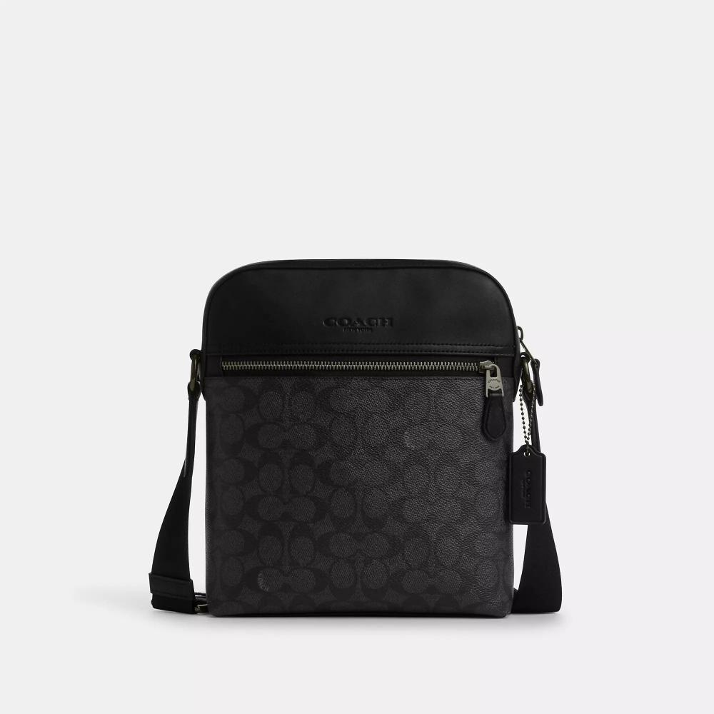 Coach Houston Flight Bag In Signature Canvas Gunmetal Charcoal Black