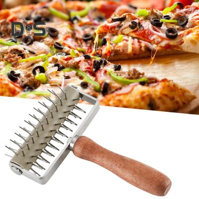 Nerezové kolečko na pizzu, chléb, jehlový váleček na těsto na koláč s dřevěnou rukojetí, pro pečení, potřeby pro výrobu