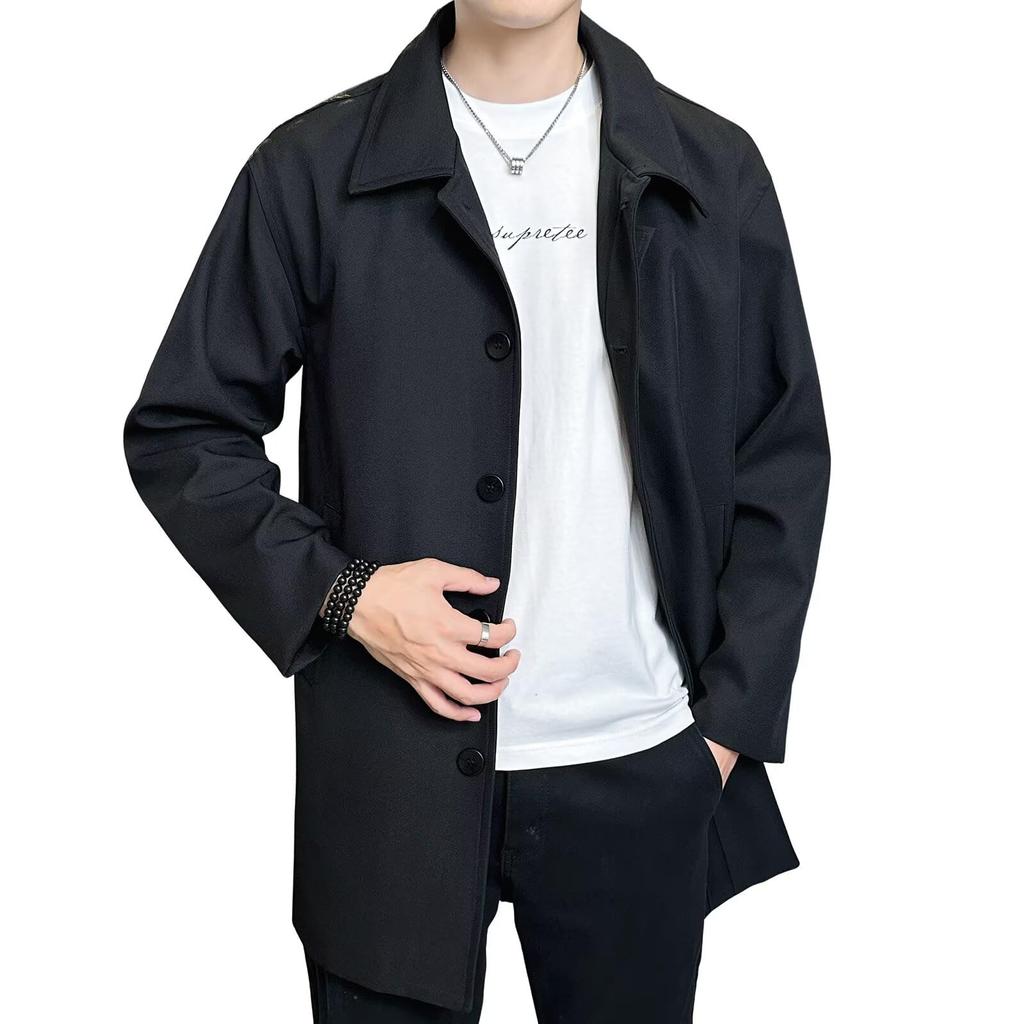 VICALLED Trench Plus Stand Fly Solid for Work and Commuting Men's Coat, Fall/Winter, Sizes, Collar, Front, Windproof, Wrinkle-Resistant, Mid-Length,