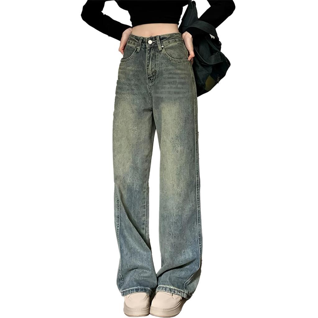 ROKUA Straight Denim Loose Korean Perfect for and Light Washed Jeans Women's High-Waisted Pants, Flattering, Fit, Retro, Vintage, Style, Slimming,