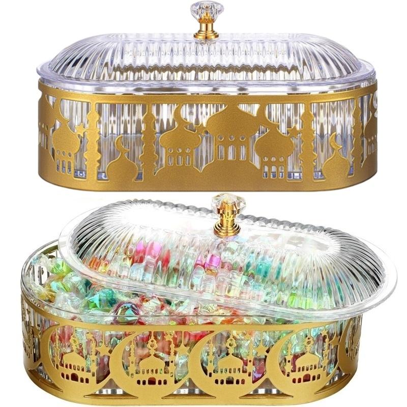 Thoughtful Gift for Festive Occasions: Filled with festive spirit, this eid mubarak tray serves as a thoughtful and practical gift for loved ones; More than just a candy container, it's a cultural gift carrying warm wishes, nice for expressing care during Ramadan and Eid