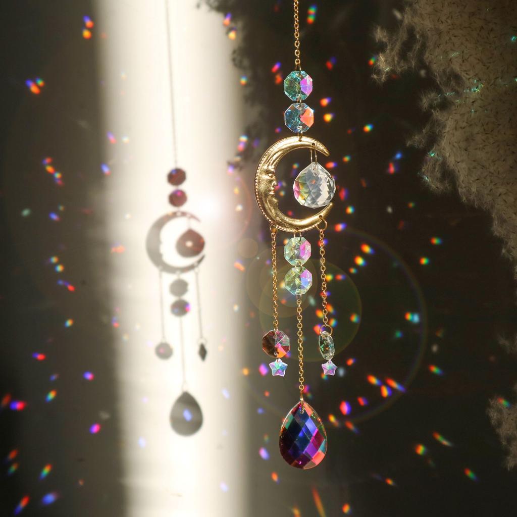 1ks Barevný křišťálový zvonkohra Měsíc Dekorativní přívěsek Křišťálový hranol Závěsný dárek SunCatcher pro zahradní párty Venkovní domácí dekorace