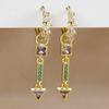 2PCS Stainless Steel Multicolor Zircon Geometry Drop Earrings For Women Fashion Creative Charm Dangle Earring Piercing Jewelry