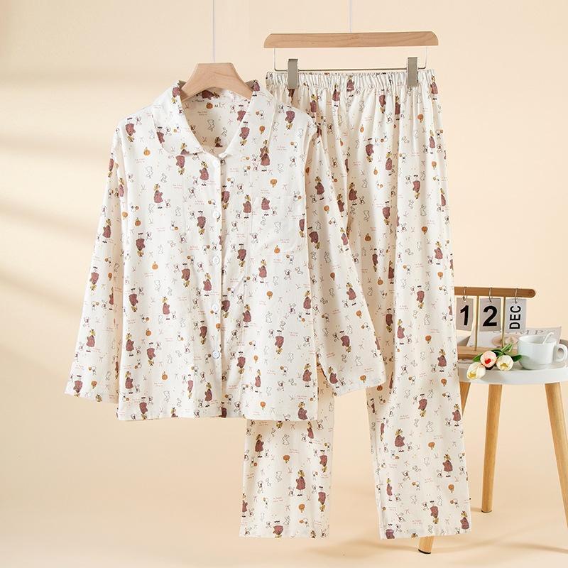 JingJingRS Women's Brushed Cotton Long Sleeve Pajama Set