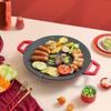 Velká hliníková slitina s nepřilnavým povrchem: Obsahuje prostornou kulatou varnou plochu vyrobenou z odolné hliníkové slitiny s prémiovým nepřilnavým povrchem.. Tato velkorysá velikost pojme různé pokrmy včetně masa, zeleniny, mořských plodů, palačinek a korejského BBQ, takže je ideální pro rodinná jídla a společenská setkání.. Nepřilnavý povrch zajišťuje rovnoměrné vaření a snadné vyjímání jídla, čímž vylepšuje váš kulinářský zážitek s minimálním úsilím.