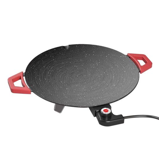 Zažijte všestranné vaření s touto elektrickou grilovací deskou, která má velký nepřilnavý povrch ideální pro maso, zeleninu, mořské plody, palačinky a korejské BBQ.. Jeho prostorný kulatý talíř snadno pojme rodinná jídla, oslavy, přílohy k hot potu i stolní grilování.. Pokročilé topné těleso zajišťuje rychlé a rovnoměrné teplo uprostřed pro dokonalé opečení, zatímco vnější okraj zůstává chladnější, aby se udržela teplota jídla – ideální pro vícestupňové vaření a sdílení.