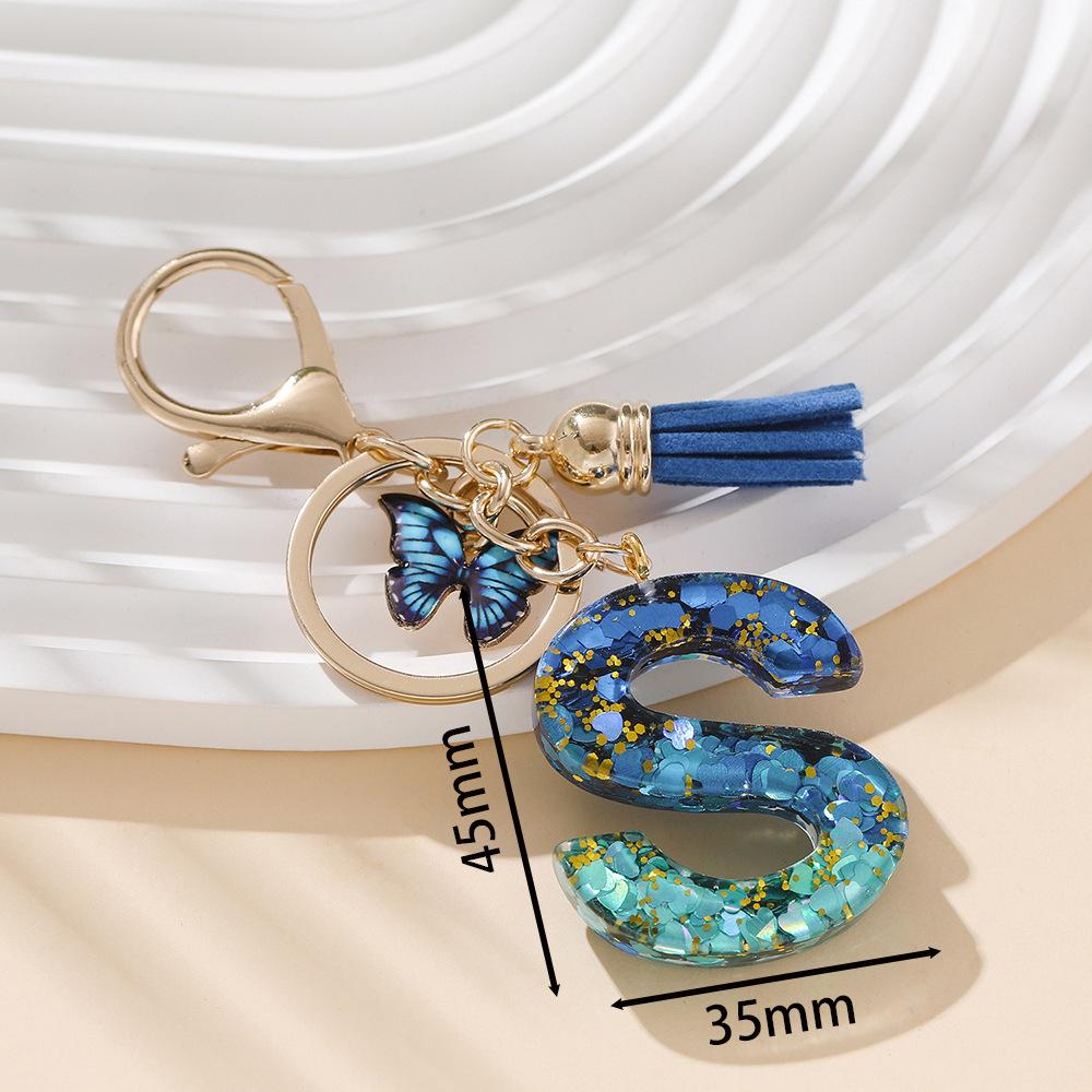 Alphabet Keychain With Butterfly Tassel Sweet Pendant