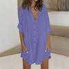 Women's Fashionable Collared Single-Breasted Double-Pocket Shirt Blouse Elegant Dress