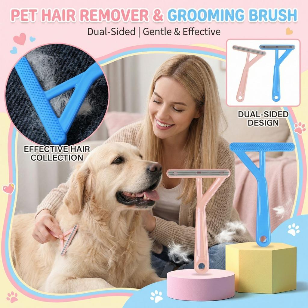 Double Sided Pet Hair Remover Brush for Dog Furniture Clothes Carpet