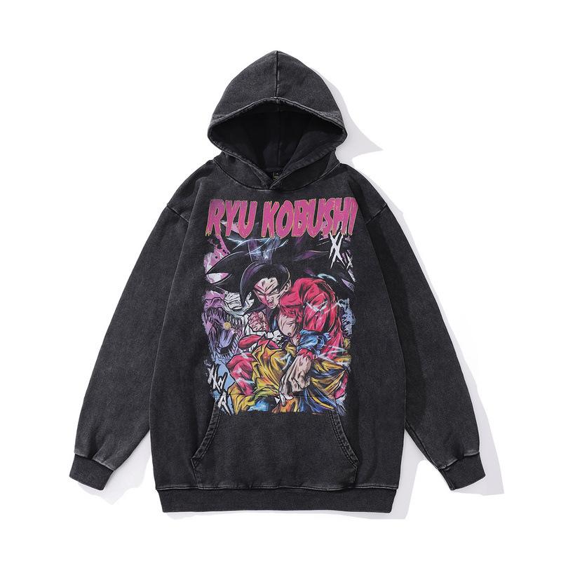 Japanese Cartoon Animation Direct Injection Printing Hooded Sweater Men'S Retro Washed Old Cotton Hoodie Men