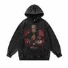 European And American Retro Rock Style Skull Print Hoodie Jacket Autumn And Winter Heavy Washing Old Hooded Sweater Men