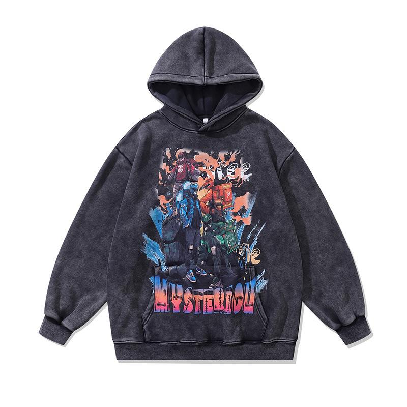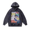 European And American High Street Washed Anime Pullover Hoodie Couple Casual Direct Spray Print Loose Hooded Sweatshirt Men And Women