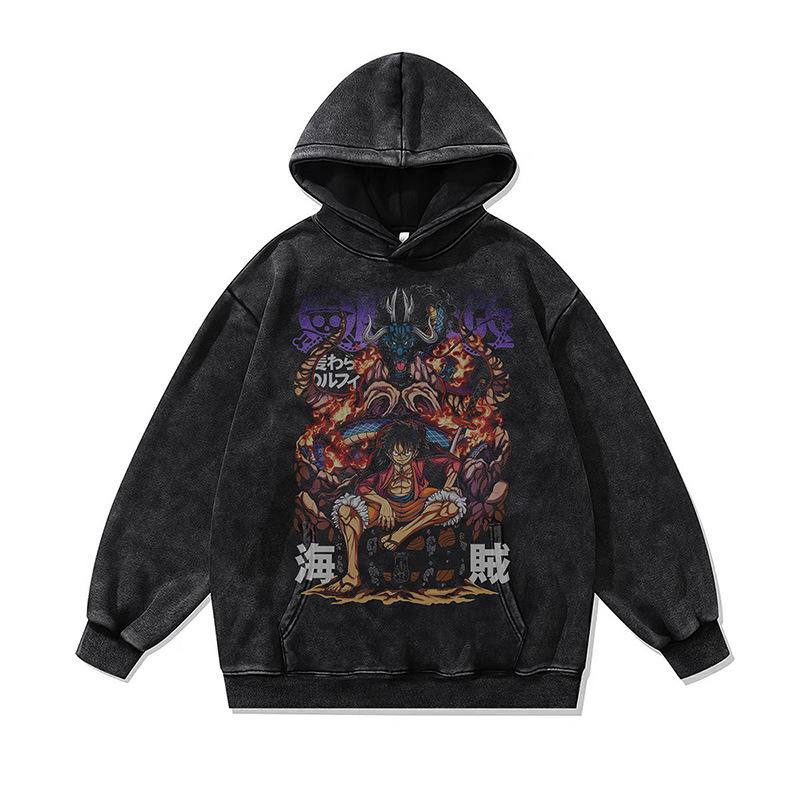 Cartoon Animation Digital Direct Injection Printing Hooded Sweater Loose Wash Old Retro Hoodie Men And Women Tide