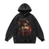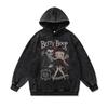 American Retro Cartoon Direct Injection Printing Hoodie Men And Women Autumn And Winter Oversize Washed Hooded Sweater