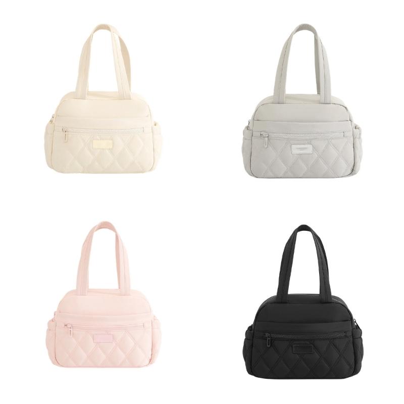 Large Capacity Thermal Lunch Bag With Zippers Front Pocket And Bottle Holders Quilted Handheld Meal Carriers