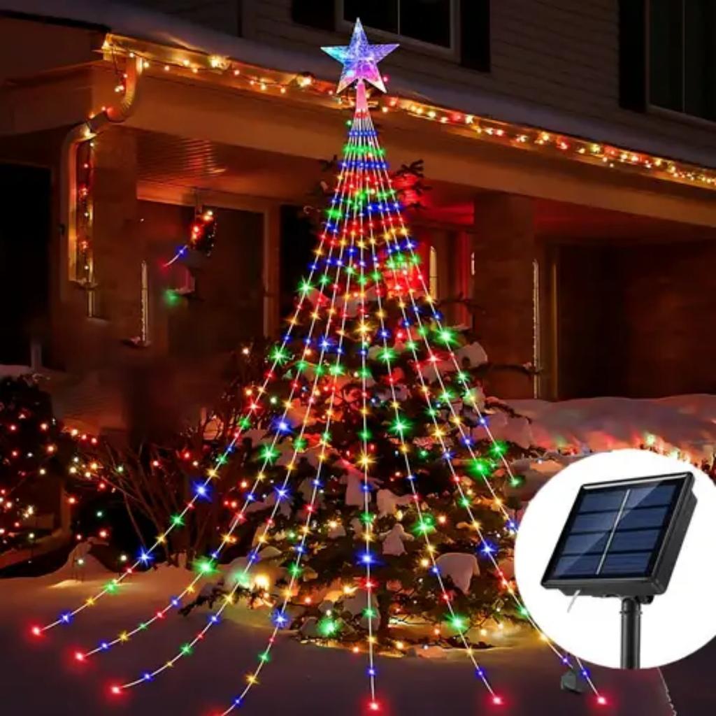 198LED Star Solar Waterfall Lights 8 Lighting Modes Christmas Lights For Wedding Yard Party Home Holiday Xmas Decoration