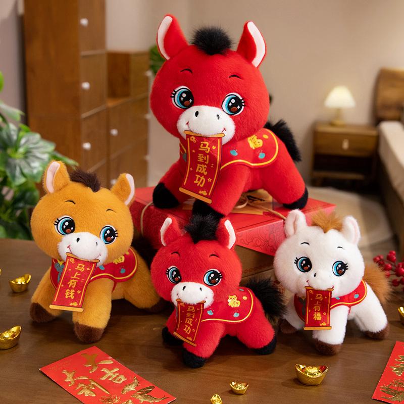 New Year of The Horse Mascot Plush Toy Cute Cartoon Zodiac Horse Doll Bring Wealth Luck Stuffed Animal Soft Cuddly New Year Gift