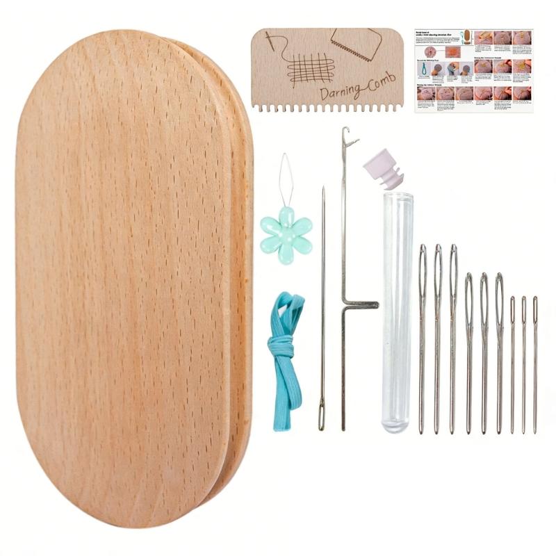 Elliptical Wooden Darning Tool Wood Mending Darning Tool Set With Large Eye Knitting Needle for Mending Socks Sweaters