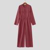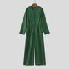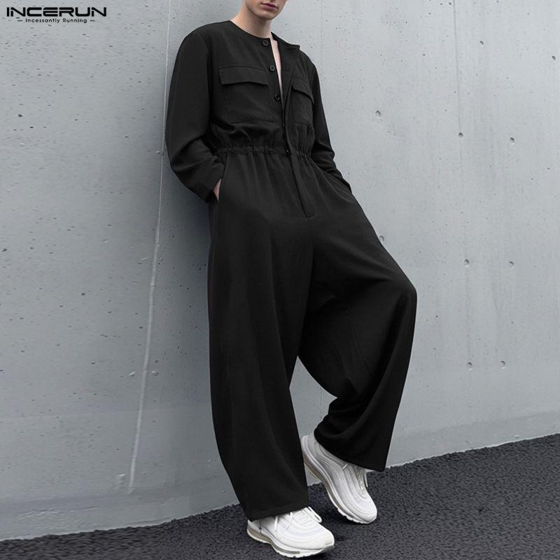 INCERUN Men Collarless Long Sleeve Belt Solid Sports Casual Buttons Long Jumpsuits Rompers