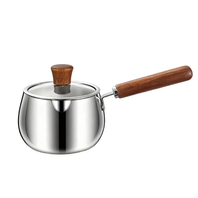 Stainless Steel Saucepan Small Cooking Pot Cookware with Ergonomic Wood Handle Efficient Milk Pan Kitchen Accessories