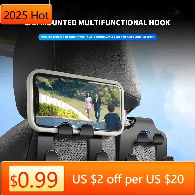 Car Sticker Car Back Seat Double Hook Hanging Storage Mobile Phone Holder For Ford Focus ST Ranger Mondeo Kugo Ecosport Fiesta K