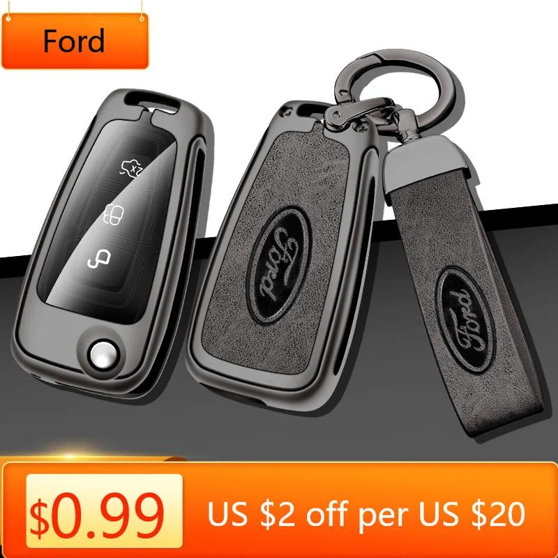 Car Sticker New 2025 Hot Car Metal Leather Key Shell Case Ford Ranger C-Max S-Max Focus 2 3 MK3 Galaxy Mondeo Transit Tourneo Ec