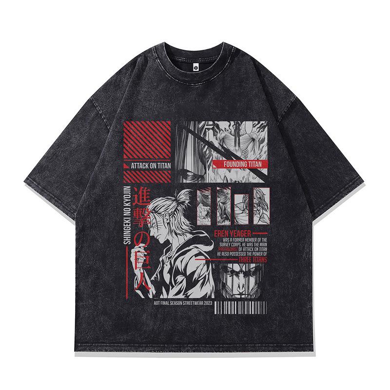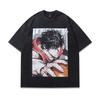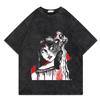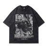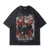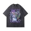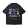 Retro Trendy T-Shirt Harajuku Two-Dimensional Cartoon Direct Injection Printing Heavy Cotton Washed Short-Sleeved T-Shirt For Men And Women