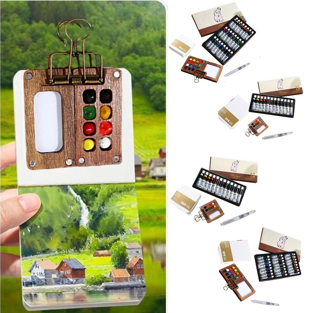 Portable Painting, Sketching, Travel Painting, Watercolor Paint Set 5ml This portable watercolor paint set includes watercolors, watercolor pens, color palettes, and a portable sketchbook. The entire set is stored in a hard storage box that can be held in the of the hand, making it easy to put into backpacks and handbags, and can be carried out without any burden. watercolor is made of pigments, with moderate color saturation, natural color mixing, easy dissolution in water, and not easy to peel off after drying; The watercolor pen tip is soft and elastic, which can outline and spread colors over a large area; The color is divided into compartments to avoid color mixing; Sketchbook paper has water absorption and is not easily wrinkled, meeting basic painting needs. The storage box is equipped with a fixed card slot, which makes it difficult for tools to and fall off. The box cover can also serve as a color matching auxiliary board, improving the convenience of use. Focusing outdoor creation and mobile painting scenarios: suitable for art students and painting enthusiasts to sketch outdoors, landscapes and street scenes; When traveling, you can record what you see along the way at any time and use a paintbrush to your travel memories; During daily commuting and , one can also come up with at any time to pass the time; It can also serve as a tool for children's art enlightenment, cultivating their interest in painting. No need for additional tools, it can be used right . It is a watercolor set that balances portability, practicality, and basic professionalism, providing convenient support for mobile creation. Main : Wood Color: As shown in the picture Size: As shown in the picture Package includes: 1 paint box, 1 drawing book, 1 pen, 1 box of paint, 1 clip Notes: Manual measurement, please allow for slight errors in size. Due to different screen displays, there may be slight differences in color.