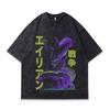 Summer New Men'S T-Shirt Dark Wind Japanese Abstract Printing Washed Retro Short-Sleeved Vintage T-Shirt For Men And Women