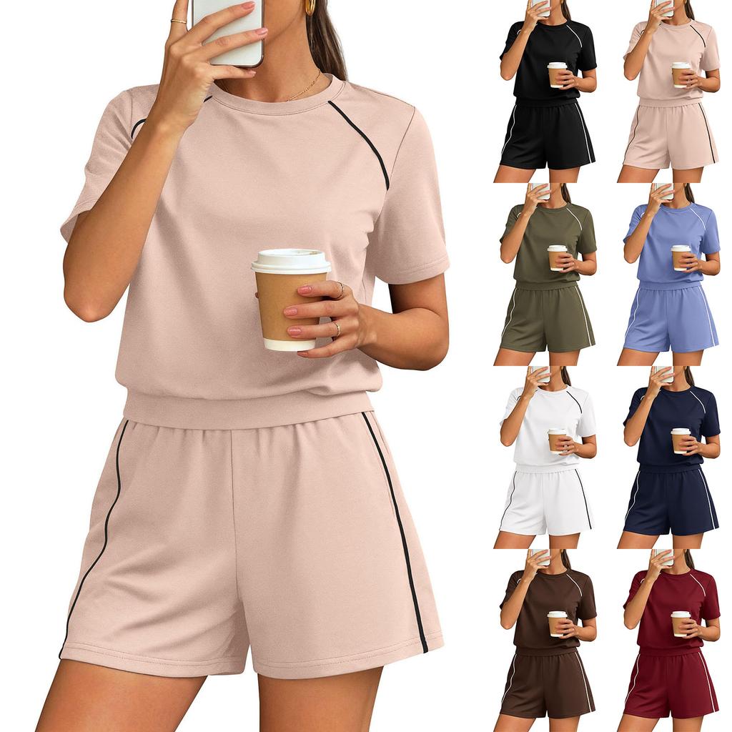 Women's Fashionable Loose-Fit Short-Sleeve Top + Shorts Casual Two-Piece Set