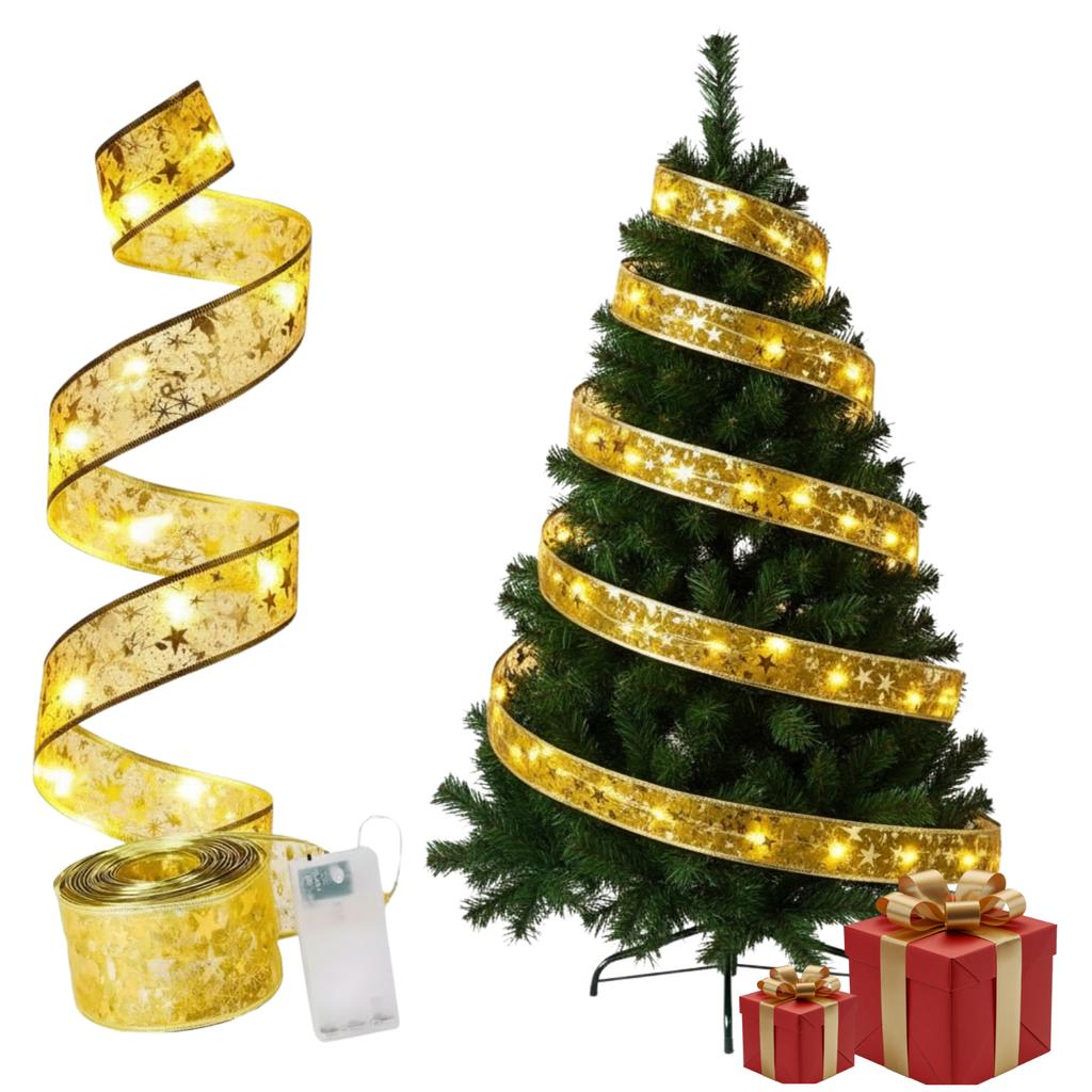 Satin ribbon Christmas garland LED chain gold eco Christmas tree lights